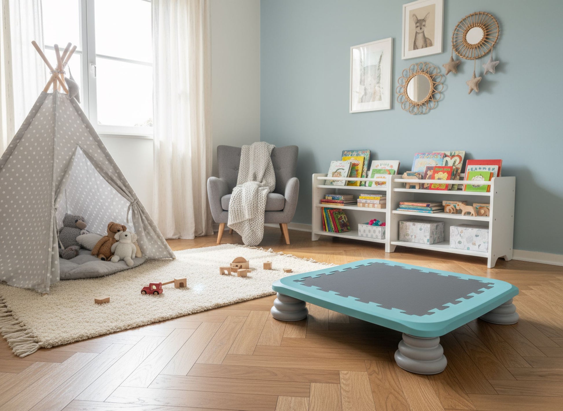 Sansetrampolinen fra LegMedMig gør det sjovt og trygt for børn at bevæge sig derhjemme - og så larmer den så lidt at alle stadig kan være i rummet.