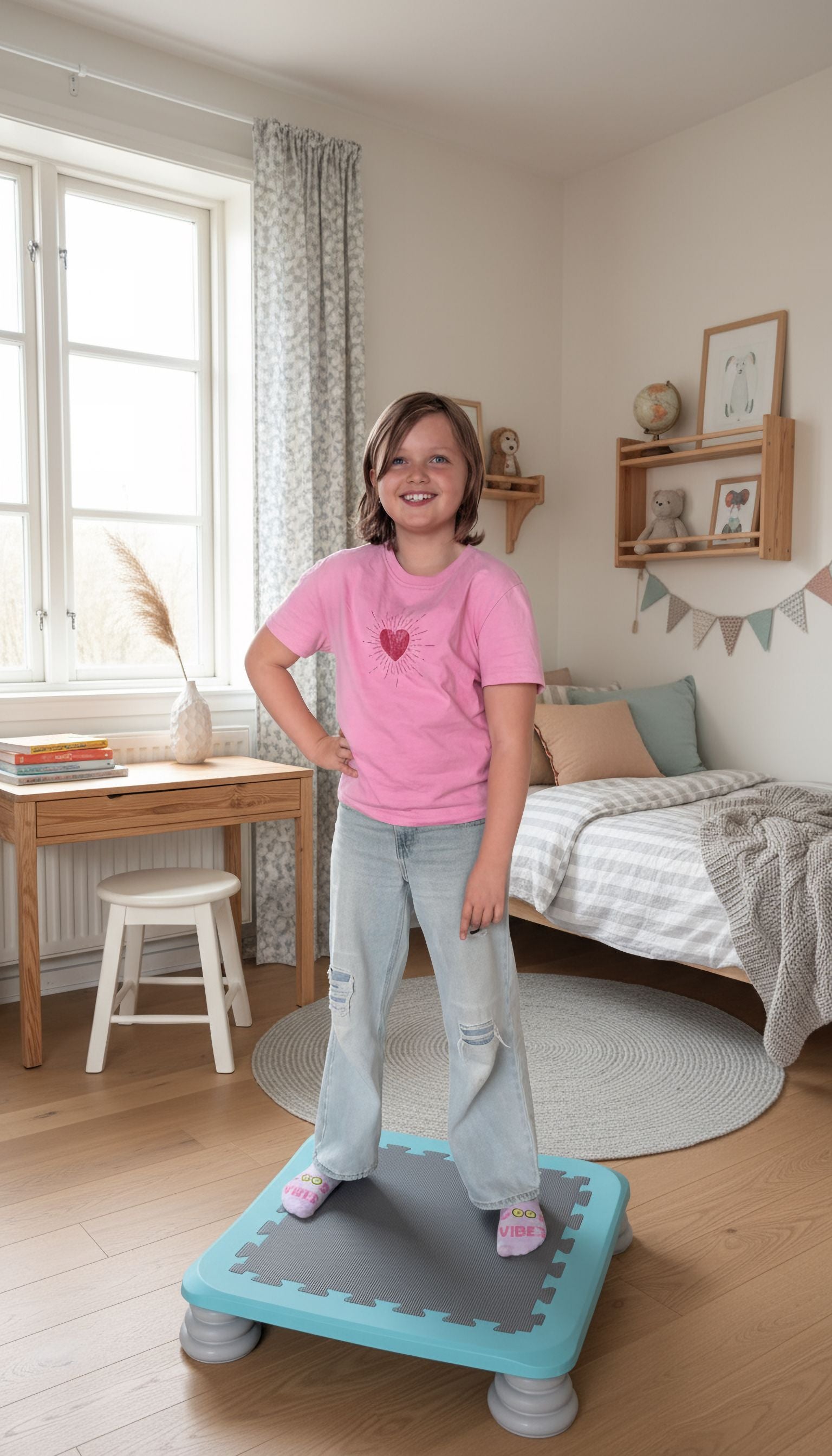 Den styrker motorik, balance og kropsfornemmelse gennem leg og hoppende glæde. Når børn hopper, frigives endorfiner – de bliver glade, rolige og får lettere ved at koncentrere sig.