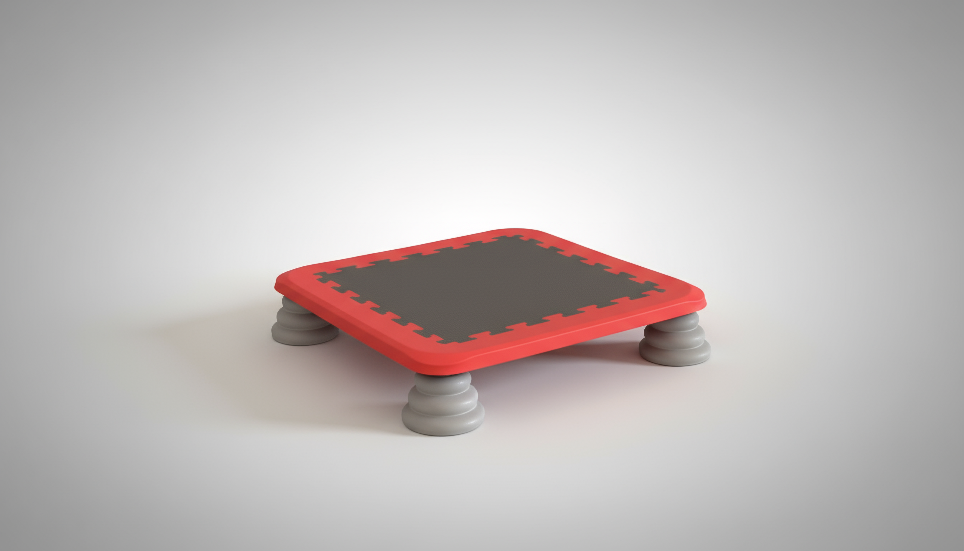 Benene kan tagse af, og så er trampolinen ca. 4 cm høj.
